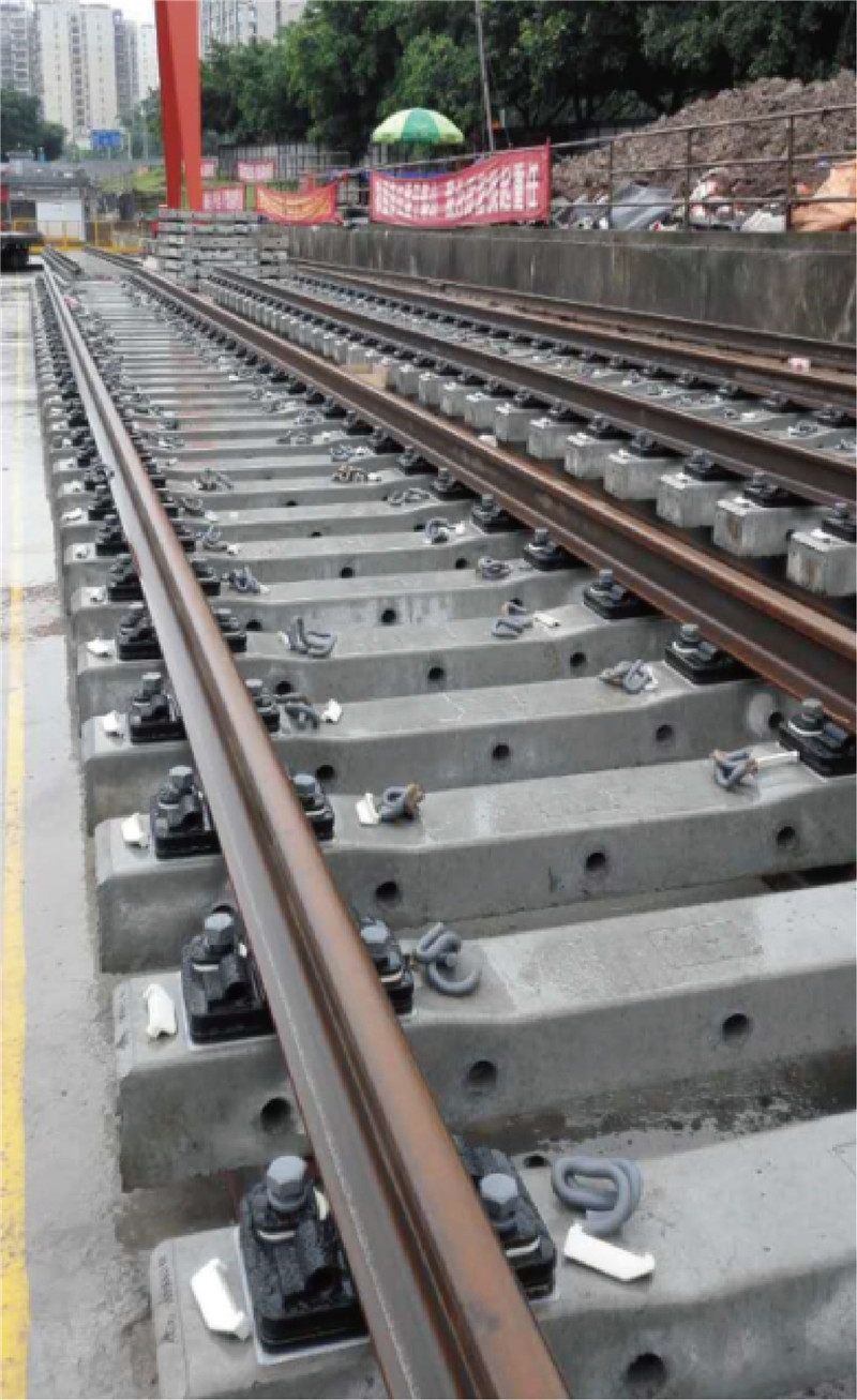 上部自鎖式雙層非線性減振扣件是第三代雙層非線性減振扣件,與普通彈性分開式扣件相比,減振效果可達8dB以上。該扣件系統(tǒng)結(jié)構(gòu)緊湊、安裝維修方便,可用于城市軌道交通(包括市域鐵路)新線鋪設或既有線路改造,也適用于高架線小阻力路段,可以應用于道岔區(qū)域減振降噪,具有廣泛適應性。